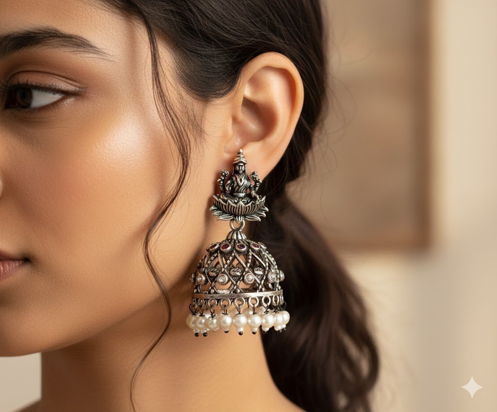 Lightweight and comfortable to wear, this oxidised jhumka style suits Sri Lankan tropical weather and is ideal for long functions, office wear with ethnic outfits, or casual outings. Pair these ethnic earrings with a kurthi, long skirt, or traditional saree, and complete the look with matching bangles or a simple chain for a graceful desi touch. A lovely pick for festivals, poojas, gatherings, and gifting.