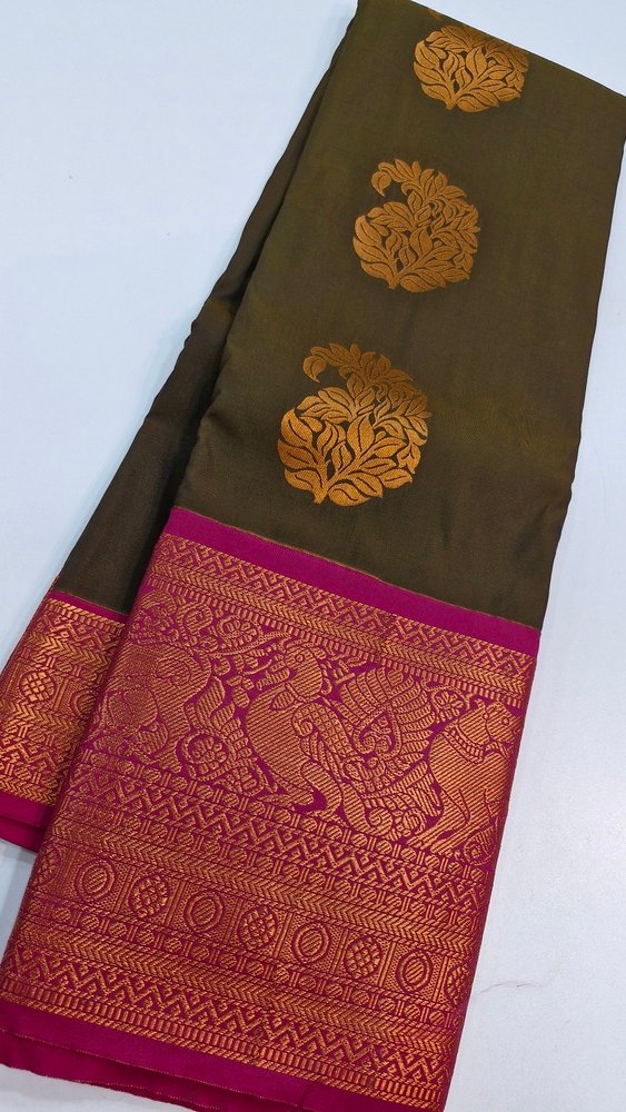 This premium Kanchi semi silk saree in unique army green colour is a lovely choice if you prefer deep, earthy tones with a traditional touch. The saree appears to be crafted in a soft-feel semi silk fabric with a gentle sheen, giving a graceful drape while remaining comfortable for Sri Lanka’s warm tropical weather. The army green shade offers a classy, understated festive look that works beautifully for weddings, engagement functions, homecoming, temple poojas and family celebrations. The Kanchi-inspired saree likely features traditional pallu and border detailing, adding that timeless South Indian charm many Sri Lankan ladies love for ethnic occasions. Style this saree with a matching or contrast blouse, antique gold or traditional jewellery, jhumkas and bangles for a complete look suitable for both daytime and evening events in Colombo and across the island.