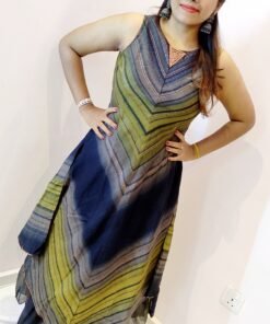 This black and mustard with gold women’s frock style kurthi is a bold, elegant choice for ladies who love rich contrast and a touch of ethnic glamour. The kurthi features a deep black base beautifully balanced with mustard and subtle gold-toned detailing, giving a festive yet wearable look that flatters many Sri Lankan skin tones. The fabric appears to be a soft-feel, breathable material, likely a rayon-type cloth, with a smooth drape and gentle frock-style flare that offers easy movement and modest coverage — ideal for Sri Lanka’s warm tropical weather. The dress-like silhouette makes this kurthi perfect for office wear, temple visits, casual outings, and semi-festive family gatherings. Pair it with black, mustard, beige, or gold-toned leggings, jeans, or palazzos and simple sandals or wedges. Add bangles and ethnic earrings to highlight the gold effect and create a polished ethnic wear look for both day and evening.