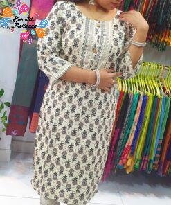 Style this black-off white kurthi set with simple studs, a watch, and flat sandals or sneakers for a clean, effortless look. Perfect for office casuals, tuition runs, coffee dates, shopping, and family visits. A lovely choice if you want to buy a casual kurthi top with pant online Sri Lanka that feels light, looks trendy, and is easy to maintain.