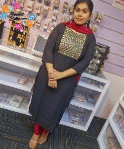 You can style this black and red shalwar suit with gold or antique-finish traditional jewellery Sri Lanka, ethnic earrings, bangles and simple heels or sandals. The top can also be worn as a kurti with slim pants or leggings for a semi-casual outing in Colombo or festive dinners. A lovely option if you wish to buy a black and red shalwar suit online Sri Lanka with a premium, classy and versatile feel.