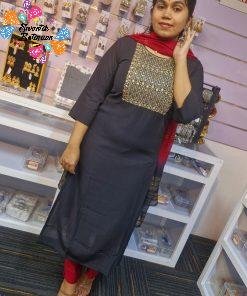 This black and red colour ready-made shalwar suit is a bold, elegant choice for women who love a strong, stylish ethnic look. The rich black tone paired with striking red detailing creates a beautiful contrast that looks perfect for evening functions, office events, religious gatherings and family celebrations in Sri Lanka. The fabric appears to be a smooth, soft-feel material with a nice drape, keeping you comfortable even in our warm tropical weather while giving the kurtha-style top a neat, flattering silhouette. This ready-made shalwar suit offers a modest fit that is easy to wear and move around in throughout the day.