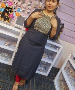 Grey and Blue Colour Casual Women Kurthi Top With Pant - XL