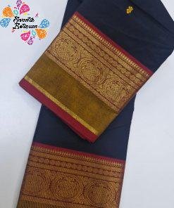 This black, red and green Chettinad cotton saree offers a bold, traditional look with a timeless South Indian touch. The body appears mainly in a classic black shade, beautifully accented with rich red and green borders and pallu, giving a striking yet elegant contrast. Woven in Chettinad cotton style, the saree likely has a soft, breathable texture with a lightweight drape, making it very comfortable for Sri Lankan tropical weather, whether for office, temple, or travel.
