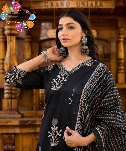 This black and white colour premium rayon readymade shalwar suit is a timeless, elegant choice for ladies who love simple yet classy ethnic wear. The set appears to include a matching kameez, bottom and dupatta, all crafted from soft-feel premium rayon fabric that drapes beautifully and feels gentle on the skin. The black base with white detailing gives a smart, sophisticated look, perfect for office wear, religious functions, family gatherings or casual outings in Sri Lanka’s warm tropical weather. Rayon is known to be breathable and lightweight, helping you stay comfortable throughout the day without feeling heavy. The silhouette likely offers a modest, relaxed fit that flatters while still allowing easy movement. Style this readymade shalwar suit with simple black or silver-tone earrings, a watch and bangles, and finish with sandals or low heels for a polished ethnic look. Ideal for those who like to buy shalwar suits online Sri Lanka and prefer premium stitching and quality fabric.