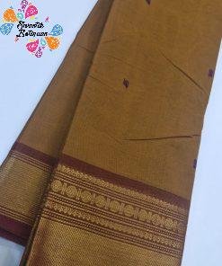 This cotton saree is ideal for office wear, evening poojas, family gatherings, and simple festive occasions. Pair it with a matching brown or gold-toned blouse for a coordinated look, or try contrast blouses in cream, maroon, or deep green for a more dressed-up style. Add traditional jewellery, bangles, and a neat bun or braid to complete your ethnic outfit. A lovely choice if you are looking to buy Chettinad cotton saree online Sri Lanka in rich brown and bronze gold shades with a graceful, classic look.