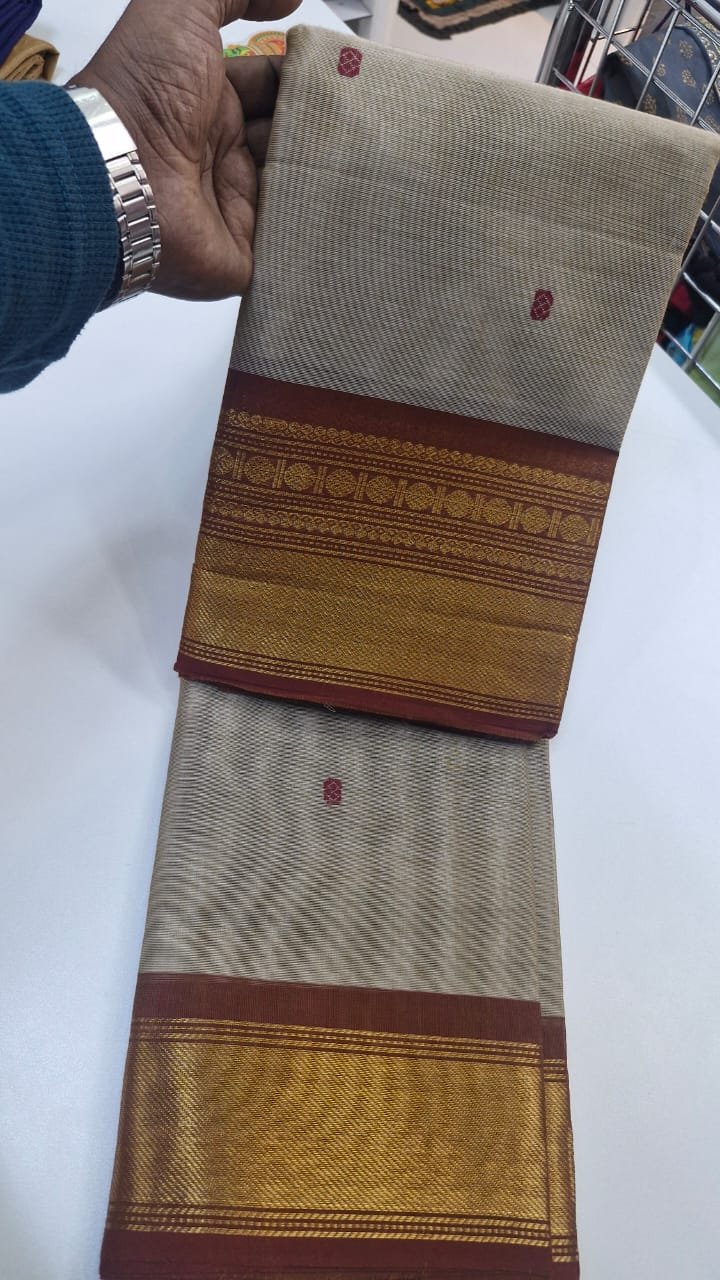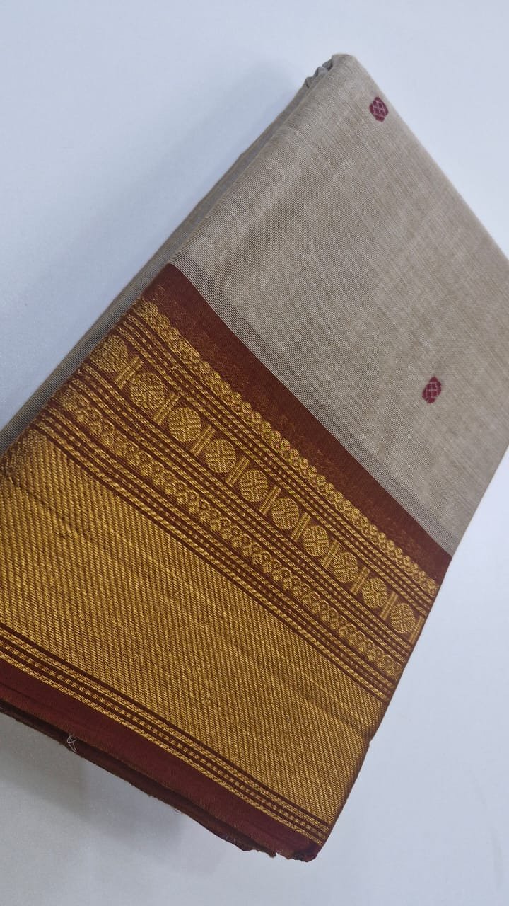 This cotton saree is ideal for office wear, temple visits, family gatherings, and casual outings where you want a neat, graceful look without bright colours. Pair it with a matching brown or grey blouse for a simple, coordinated style, or choose contrast blouses in maroon, mustard, or cream for a slightly dressier touch. Add traditional jewellery, slim bangles, and a structured handbag to complete your ethnic outfit.