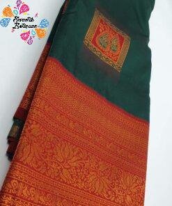 Ideal for weddings, receptions, festive poojas, office functions and family gatherings, this traditional saree can be styled with a matching dark green blouse or a contrasting maroon or gold blouse for a more striking look. Complete your outfit with traditional jewellery, bangles and a small clutch for a classic ethnic style. A lovely choice if you are looking to buy a floral semi silk saree online in Sri Lanka for special occasions.
