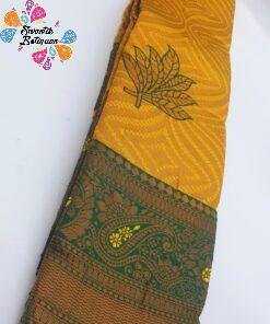 This floral designer yellow and green semi silk saree is a lovely option if you like bright, graceful traditional wear. The saree appears to feature a cheerful yellow-toned body with delicate floral patterns, giving it a soft, feminine and youthful feel. A rich green big border frames the saree beautifully, adding depth and a festive contrast that makes it ideal for special occasions. The semi silk fabric likely has a smooth, soft-feel drape that is comfortable and lightweight for Sri Lanka’s tropical weather, while still giving a polished, dressed-up look. This traditional saree is perfect for weddings, poojas, home functions, festivals and special office events. Pair it with a matching green blouse, or try a contrast yellow or gold-toned blouse for extra brightness. Complete your look with traditional jewellery, bangles and a simple clutch — a beautiful choice for those looking to buy saree online in Sri Lanka.