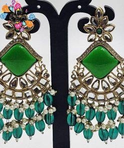 These green colour kundan earrings are a beautiful choice if you love classic Indian and Sri Lankan ethnic jewellery with a touch of royal charm. The earrings appear to feature a gold-tone metal base with traditional kundan style stonework, highlighted by rich green stones that give a bright, festive look. Their design looks elegant yet easy to wear, making them suitable for long functions in Sri Lanka’s warm tropical weather without feeling too heavy. Perfect to pair with soft silk sarees, cotton sarees, lehengas and kurthis for weddings, receptions, poojas, home functions and festive celebrations. These kundan style earrings also match well with green-bordered sarees or contrast blouses for a coordinated traditional look. Ideal if you are looking for traditional jewellery Sri Lanka for bridal wear, bridesmaids or special occasions.