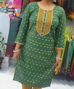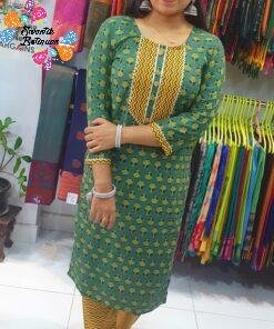 Style this green-yellow kurthi set with simple earrings, a watch, and flat sandals or sneakers for a clean, effortless everyday look. Perfect for office casuals, tuition runs, shopping, coffee dates, and family visits. A lovely option if you want to buy a casual kurthi top with pant online Sri Lanka that feels light, looks modern, and is easy to maintain.
