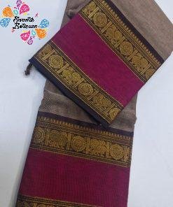 This cotton saree is ideal for office wear, temple visits, casual outings, and simple festive gatherings. Pair it with a matching magenta blouse for a bold coordinated style, or try contrast blouses in white, silver grey, or deep purple for a more dressy look. Add traditional jewellery, slim bangles, and a neat handbag to complete your ethnic outfit. A great option if you wish to buy Chettinad cotton saree online Sri Lanka in a grey and magenta colour combination.