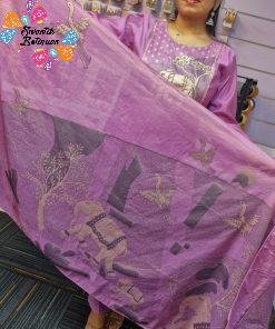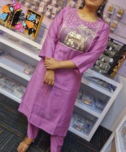You can style this lavender Roman silk shalwar suit with silver, pearl or rose-gold traditional jewellery Sri Lanka, ethnic earrings, bangles and simple sandals or heels. The top can also be worn as a kurti/kurthi with slim pants or leggings for a neat semi-casual look in Colombo or everyday outings. A lovely option if you wish to buy a lavender Roman silk designer shalwar suit online Sri Lanka with a premium, graceful and comfortable feel.