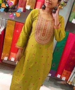 This light olive green embroidery side open kurthi is a soft, elegant piece that’s perfect for everyday wear with a gentle ethnic touch. The kurthi comes in a soothing light olive green shade that flatters many Sri Lankan skin tones and gives a calm, graceful look. It appears to be stitched from a soft-feel, breathable fabric with a smooth fall, making it very comfortable for Sri Lanka’s warm tropical weather. The side open design adds a modern twist to the classic kurthi style, while the delicate embroidery on the front enhances its traditional charm. This kurtha top is ideal for office wear, temple visits, casual outings, and small family gatherings. Pair this light olive green kurti with white, beige, black, or matching leggings, jeans, or palazzos, and complete the look with simple sandals, bangles, and ethnic earrings. A lovely choice for ladies looking to buy a stylish embroidered kurthi online in Sri Lanka.