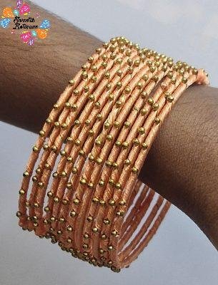 Light Orange Colour Rain Drop Silk Thread Bangles