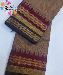 This mustard, red and black Chettinad cotton saree brings a bold, traditional charm that is perfect if you like rich, classic colours. The body appears in a warm mustard tone, beautifully framed with striking red and black borders and pallu, giving a strong South Indian-inspired contrast that suits many Sri Lankan skin tones. Woven in Chettinad cotton style, the saree likely feels soft and breathable with a lightweight drape, making it very comfortable for Sri Lankan tropical weather, whether you are at office, travelling, or attending a pooja.