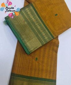 This mustard yellow and green Chettinad cotton saree brings a bright, traditional South Indian charm that is perfect for everyday elegance. The body appears in a warm mustard yellow tone, beautifully contrasted with rich green borders and pallu, giving a classic ethnic look that suits many Sri Lankan skin tones. Woven in Chettinad cotton style, the saree likely feels soft and breathable on the skin, with a lightweight drape that is very comfortable for our tropical weather, even during long hours at office or travel.