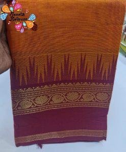 This cotton saree is ideal for office wear, temple visits, religious functions, family gatherings, and simple festive occasions. Pair it with a matching red or orange blouse for a coordinated look, or choose contrast blouses in cream, gold, or green for a more festive touch. Add traditional jewellery, bangles, and a neat bun or braid to complete your ethnic outfit. A lovely choice if you are looking to buy Chettinad cotton saree online Sri Lanka in a vibrant orange and red colour combination.