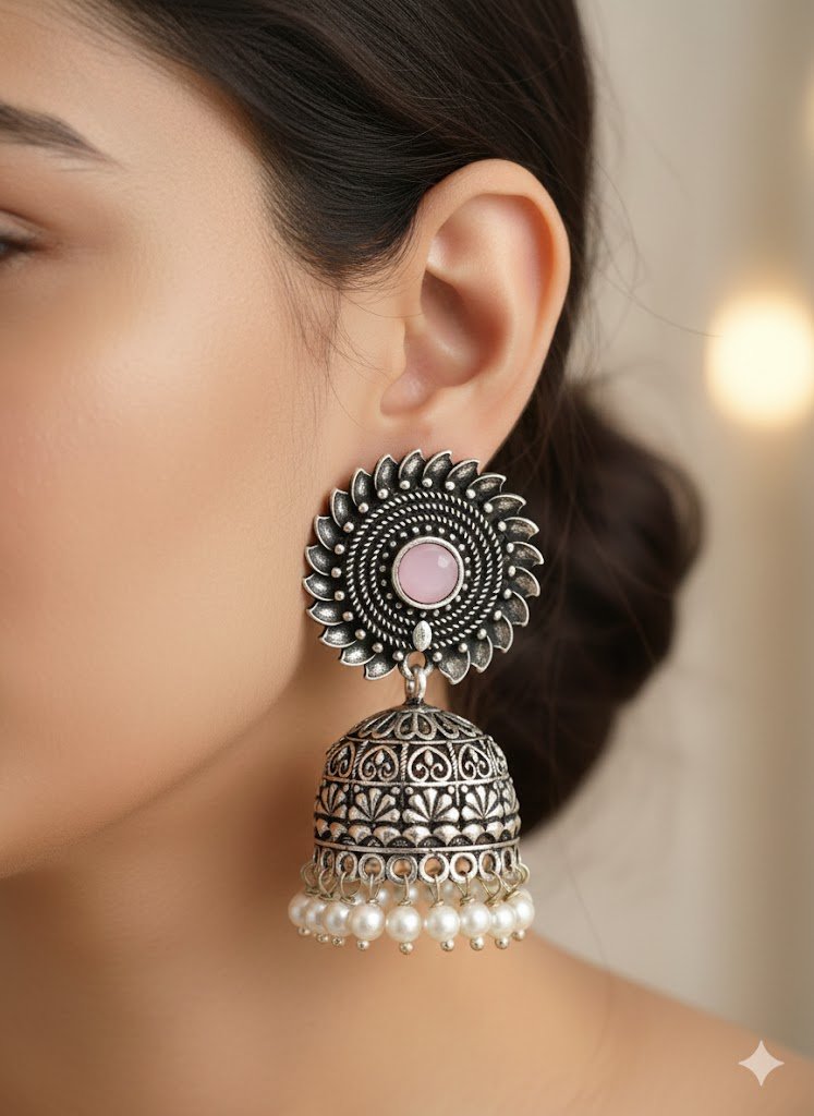You can style this oxidised silver jhumka with cotton sarees, soft silk sarees, kurthi or kurtha tops, anarkalis, long skirts or even a simple women’s top and jeans for a modern Indo-fusion look. Perfect for poojas, temple visits, weddings, festive functions, office ethnic days, family gatherings and casual outings when you want a touch of traditional jewellery Sri Lanka with easy online shopping.