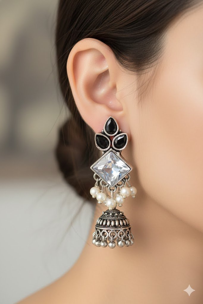 You can pair this oxidised jhumkha with cotton sarees, soft silk sarees, kurthis, kurtha tops, anarkalis, long skirts or even a simple women’s top and jeans for a pretty Indo-fusion look. Ideal for poojas, temple visits, weddings, festive functions, office cultural days, family gatherings or casual outings when you want to add a hint of traditional jewellery without going too bold. A beautiful choice for traditional jewellery Sri Lanka and online shopping SL.
