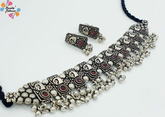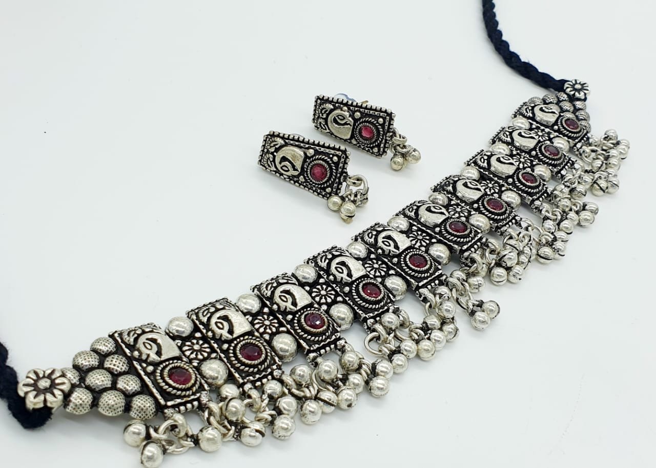 Peacock Designer Oxidised Chocker Necklace