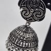 Peacock designer oxidised silver jhumkha (Style 4) with antique-style finish and bead drops, perfect with sarees and kurtis for office wear, poojas, temple visits, home functions and casual ethnic outings across Sri Lanka.