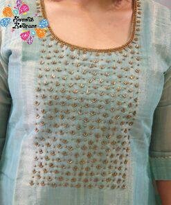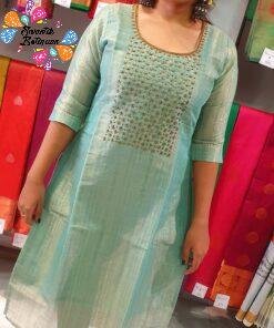This peacock green aari work side open kurthi is a rich, elegant piece that beautifully combines traditional detailing with a modern silhouette. The kurthi comes in a deep peacock green shade that flatters many Sri Lankan skin tones and gives a graceful, slightly festive look. It appears to be crafted from soft-feel, breathable fabric with a smooth fall, making it comfortable for Sri Lanka’s warm tropical weather. Delicate aari work embroidery on the front adds an ethnic touch of refinement without feeling heavy, while the side open design brings in a stylish, contemporary twist and allows easy movement. This kurtha top is perfect for office wear, temple visits, dinner outings, or small family functions. Pair this peacock green kurti with white, beige, black, or matching leggings, jeans, or palazzos, and complete the look with ethnic earrings and bangles for a neat, modest ethnic wear style.