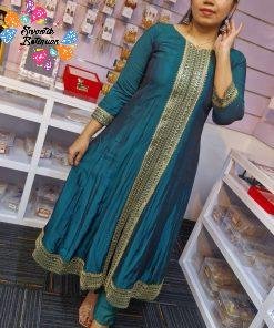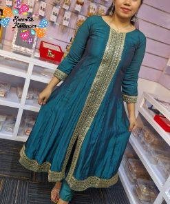 You can style this peacock green and butter shalwar suit with gold or antique-finish traditional jewellery Sri Lanka, ethnic earrings, bangles and simple sandals or heels. The top can also be worn as a kurti with slim pants or leggings for a polished, semi-casual look in Colombo or everyday outings. A lovely option if you wish to buy a dual-tone designer shalwar suit online Sri Lanka with a premium, graceful feel.