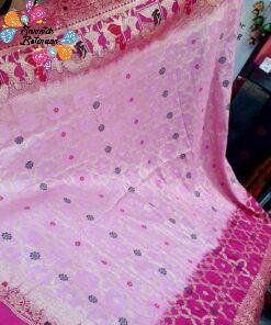 This pink premium Banarasi silk saree is a graceful choice if you love soft, feminine tones with a rich traditional look. The saree appears to feature a beautiful pink body with classic Banarasi-style weaving and delicate, likely zari-inspired motifs along the border and pallu, giving it a luxurious festive feel without being too loud. The fabric looks like a premium silk or silk-blend with a smooth, soft-feel texture and gentle sheen, draping elegantly while staying comfortable for Sri Lanka’s warm tropical weather. This saree is ideal for weddings, poruwa ceremonies, homecoming, receptions, engagement functions, festive events, and special family gatherings. Style this pink Banarasi silk saree with a matching or contrast blouse in gold, maroon, or deep green, along with gold or antique gold traditional jewellery, bangles, and a clutch for a complete ethnic look. Perfect if you wish to buy a pink traditional Banarasi silk saree online in Sri Lanka.