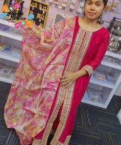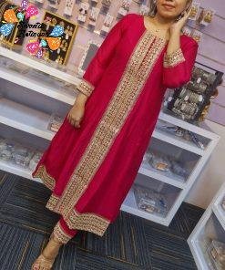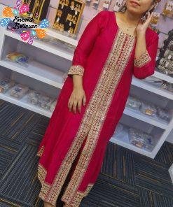 You can style this pink shalwar suit with gold, pearl or rose-gold traditional jewellery Sri Lanka, simple ethnic earrings, bangles and sandals or low heels. The top can also be worn as a kurti with slim pants or leggings for a neat, semi-casual look in Colombo or everyday outings. A lovely option if you wish to buy a pink ready-made shalwar suit online Sri Lanka with a soft, elegant and easy-to-wear feel.