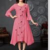 You can style this pink-white rayon kurthi top with white leggings, denim jeans, or slim trousers for a simple Indo-western look. Add small studs, a light chain, and flat sandals or wedges to complete your everyday outfit. A lovely option if you are looking to buy a casual rayon kurti top online in Sri Lanka, especially if you like soft colours and comfortable ethnic wear.
