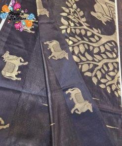 Style this black pichwai tussur silk saree with a matching or contrast blouse in gold, maroon, red, or cream, and complete your look with traditional jewellery Sri Lanka favourites like jhumkas, bangles, and a bold necklace. A lovely option if you are looking to buy saree online Sri Lanka for elegant festive and cultural occasions.