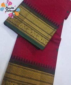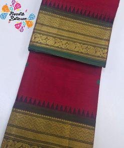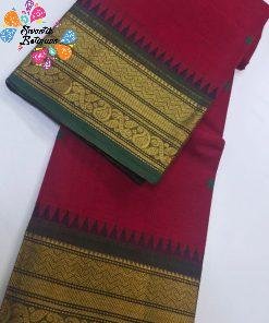 Ideal for office wear, poojas, family gatherings, and simple festive occasions, this cotton saree balances practicality with tradition. Pair it with a matching green or red blouse for a coordinated look, or try contrast blouses in cream, gold, or black for a more festive style. Finish your outfit with traditional jewellery, bangles, and a neat bun or braid for a graceful ethnic appearance. A lovely option if you are looking to buy Chettinad cotton saree online Sri Lanka in a classic red and green combination.