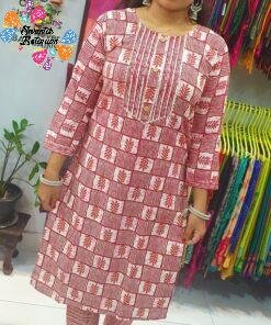 Style this red-white kurthi set with simple earrings, a watch, and flat sandals or sneakers for an effortlessly put-together look. Perfect for office casuals, tuition runs, coffee dates, shopping, and family visits. A lovely pick if you want to buy a casual kurthi top with pant online Sri Lanka that feels light, looks modern, and is easy to maintain.