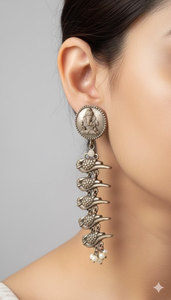 Tags: gift for her Sri Lanka, temple wear earrings, ethnic earrings Colombo, women’s earrings online SL, spiritual jewellery Sri Lanka, kurthi earrings, devotional jewellery, designer silver earrings, Oxidised Silver Earrings, Vinayagar earrings, traditional jewellery Sri Lanka, Ganesha earrings, saree earrings
