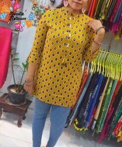 Style this yellow short kurthi with denim, white, black, beige, or cream bottoms. Add simple earrings, a watch, and flat sandals or sneakers for a clean, everyday look perfect for office casuals, coffee dates, tuition runs, shopping, and family visits. A lovely pick if you want to buy a short kurthi online Sri Lanka that is easy to wear, mix, and match.